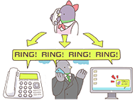 一般の携帯電話や通信アプリと大きく違うところは、1対1の通話ではなく1対多。ビジネス電話に適したチームでの運用方法です。着信があった際には、複数人の電話端末が一斉に鳴り、接客をおこなうことが出来ます。