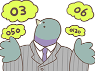 東京03/大阪06等、全国の固定電話番号、フリーダイヤル0120/0800、IP番号050対応。